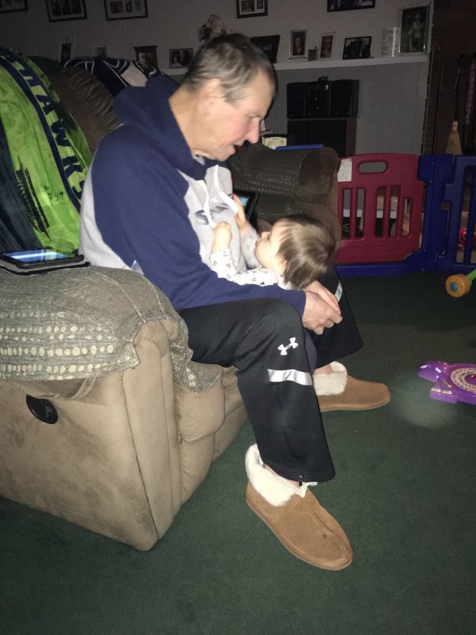 When my dad became a grandpa, he took the job seriously. He changed diapers, held Lukas so his exhausted parents could nap, and loved him so very much. He was the one person who could always get Lukas to nap, regardless of how hard Lukas fought it. Often times Lukas would just crawl over to him and put his arms up to be snuggled in what my dad called his "Grandpa-Barcalounger". His record for getting Lukas to sleep was under 8 minutes! Lukas loved to laugh at grandpa and grandpa loved making him laugh. The two of them shared a special bond, and while I am so incredibly saddened that their time together was cut short, I am so thankful for the joy the two of them brought to each other.